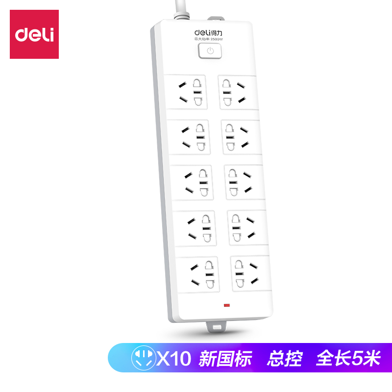 商品名称:得力18275-05插座_10组_5米_PVC袋装(白)(只)